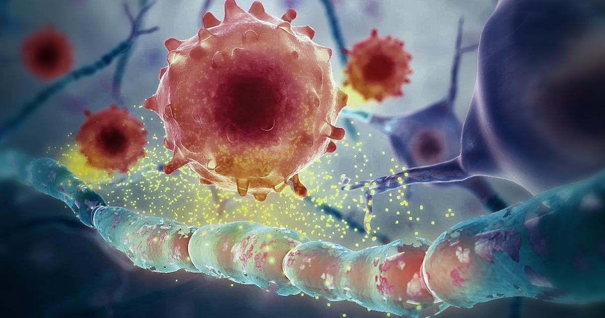 The immune system of multiple sclerosis patients causes the central nervous system or the brain and spinal cord to become inflamed and damaged. There are a few main types of immune cells involved in the affected individual's abnormal immune response. T-cells enter the central nervous system through the blood vessels after becoming activated in the lymph system. When the T-cells enter the central nervous system, they release harmful chemicals that cause damage and inflammation to the tissues of the brain and spinal cord. Damage occurs to the nerve fibers, their myelin sheathing, and the cells that produce myelin. The type of cells in the immune system responsible for deactivating inflammation or T-regulatory cells are non-functional in multiple sclerosis patients. T-cells help activate the other type of immune system cell involved with multiple sclerosis called B-cells, which stimulate the action of certain proteins and make antibodies that cause direct damage to the cells in the central nervous system. A combination of these malfunctions in an individual's immune system causes multiple sclerosis to occur.